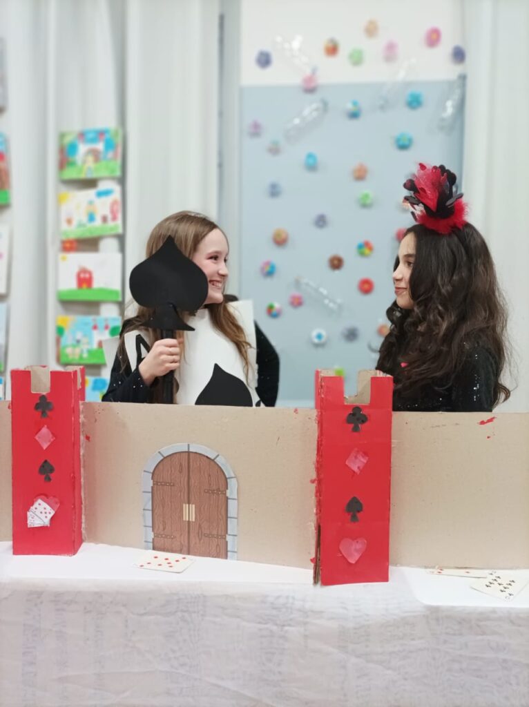 As turmas do 4º e 5º ano abriram as portas de suas salas de aula para transformar as classes em uma banca de feira, permitindo que seus familiares e colaboradores do Colégio visualizassem, por meio de maquetes, intervenções artísticas, mapas, jogos de cartas, quiz e apresentações digitais, as nossas ações e escolhas do dia a dia em relação aos impactos que geramos, nem sempre positivos, no espaço em que vivemos. Foi uma aula de ecologia, ciências, geografia e história ministrada pelos estudantes em suas demonstrações. O 5º ano, por exemplo, fez com que mergulhassemos no conto Alice no País das Maravilhas e, entre um chazinho e outro de ervas medicinais servido por estudantes vestidos do personagem Chapeleiro Maluco, foi possível ter uma reconexão com a fonte de vida que é a natureza e sentir o sabor de tudo o que a nossa Terra nos dá e que, por vezes, na corrida da praticidade do dia a dia, ignoramos sem querer.